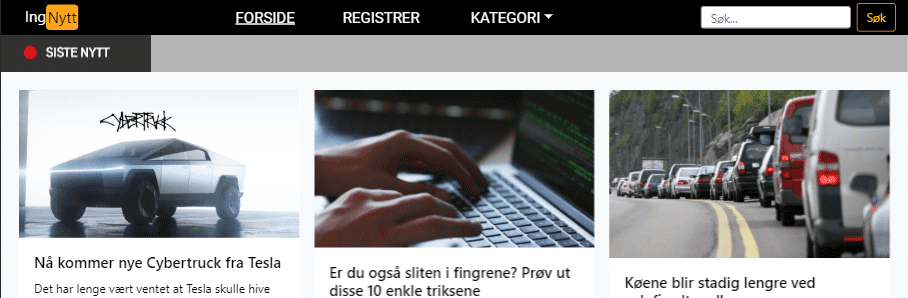 Som en del av emnet TDAT2003 Systemutvikling 2 med web-applikasjoner skulle vi lage en lite nyhetsside. Den skulle ha nyhetssaker med kommentarfelt, og mulighet for hvem som helst til å publisere en sak(forum). Resultatet ble utklippet sett over. "Miniprosjkt ved studiet. Laget en nyhetsside mulighet for diskusjon(forum). Brukere kunne laste opp egne saker."